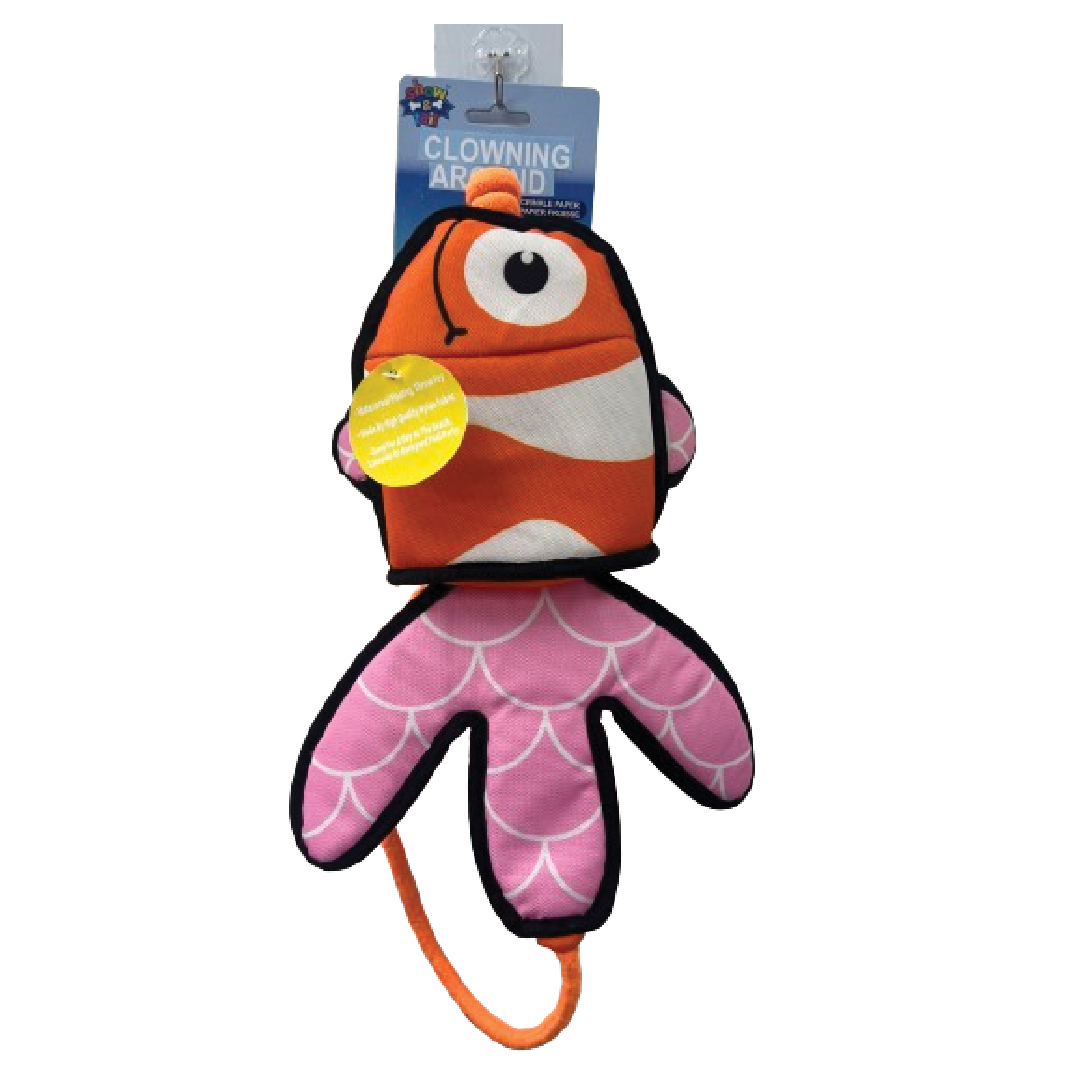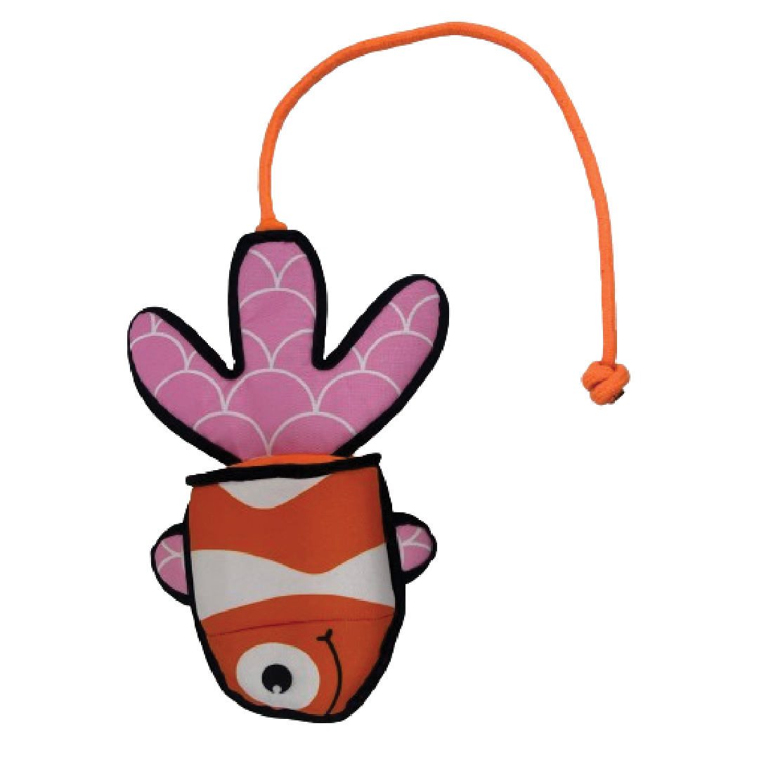 "Clowning Around," the ultimate 13” floating throw toy inspired by the whimsical clown fish!